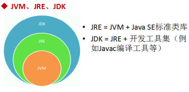 JRE = JVM + 核心类库(常用类:String、日期时间、数学、集合、IO、网络、多线程等)